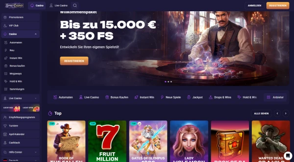 Bei den Tischspielen siehst du klassische Formate wie Blackjack und Roulette sowie Varianten mit Side Bets. Live-Dealer-Tische bringen Echtzeit-Action mit Host, was viele Ă–sterreicher wegen des sozialen GefĂĽhls bevorzugen. Wenn du die Spiritcasino Auswahl mit kleineren Plattformen vergleichst, liegt der Hauptunterschied in der Menge an Optionen und der Bandbreite der Spieltypen.